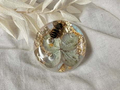 Lunar Droplet Brooch - Pale Aqua & Gold