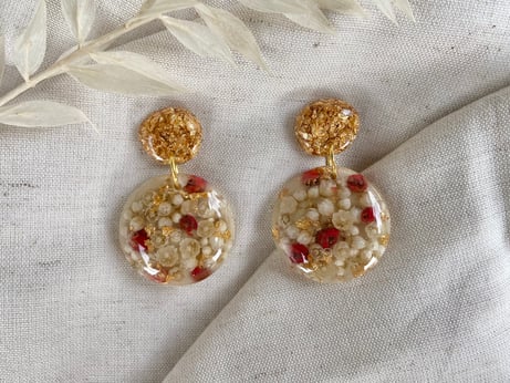 Droplet Earrings - Rice Flower, Peppercorn & Gold
